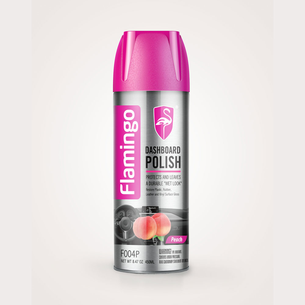 منتج تلميع FLAMINGO للوحة القيادة بنكهة الخوخ يحتوي على شمع تلميع واقي، مناسب للمركبات، لوحة القيادة، المقاعد الجلدية، المنتجات الجلدية الاصطناعية، إلخ. يزيد من لمعان السطح ويزيل الأوساخ. رائحة الياسمين الفريدة تمنحك راحة طبيعية. مناسب أيضًا للأجهزة المنزلية، الأثاث والمنتجات البلاستيكية. اعتنِ بسياراتك حقًا. يتم التلميع والتنظيف في خطوة واحدة. تعليمات الاستخدام: 1. رج جيدًا قبل الاستخدام. 2. رش بالتساوي على بعد 15-25 سم. 3. امسح السطح برفق للكشف عن اللمعان والسطوع.